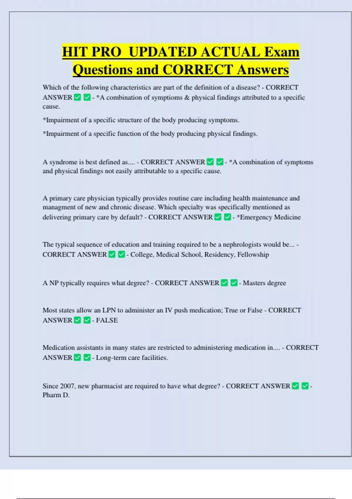 Questions and CORRECT Answers