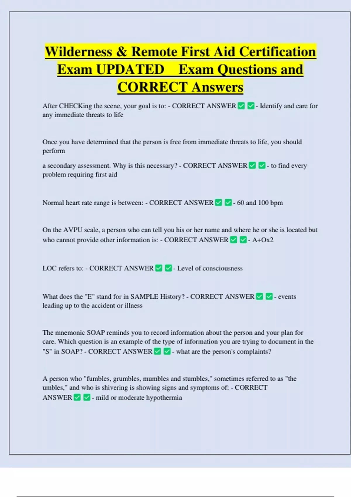 Wilderness & Remote First Aid Certification Exam UPDATED Exam Questions and CORRECT Answers