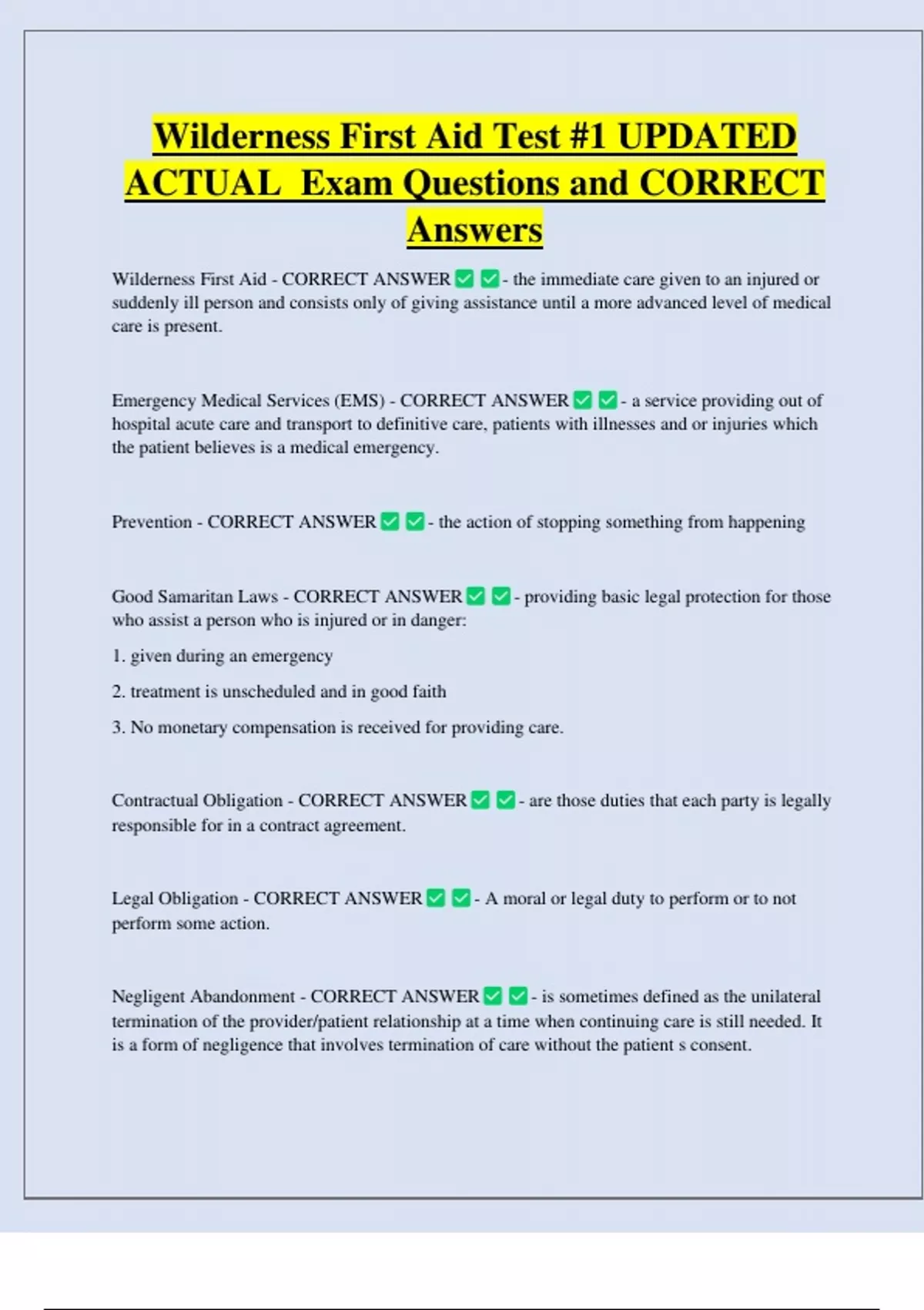 Wilderness First Aid - CORRECT ANSWER - the immediate care given to an injured or