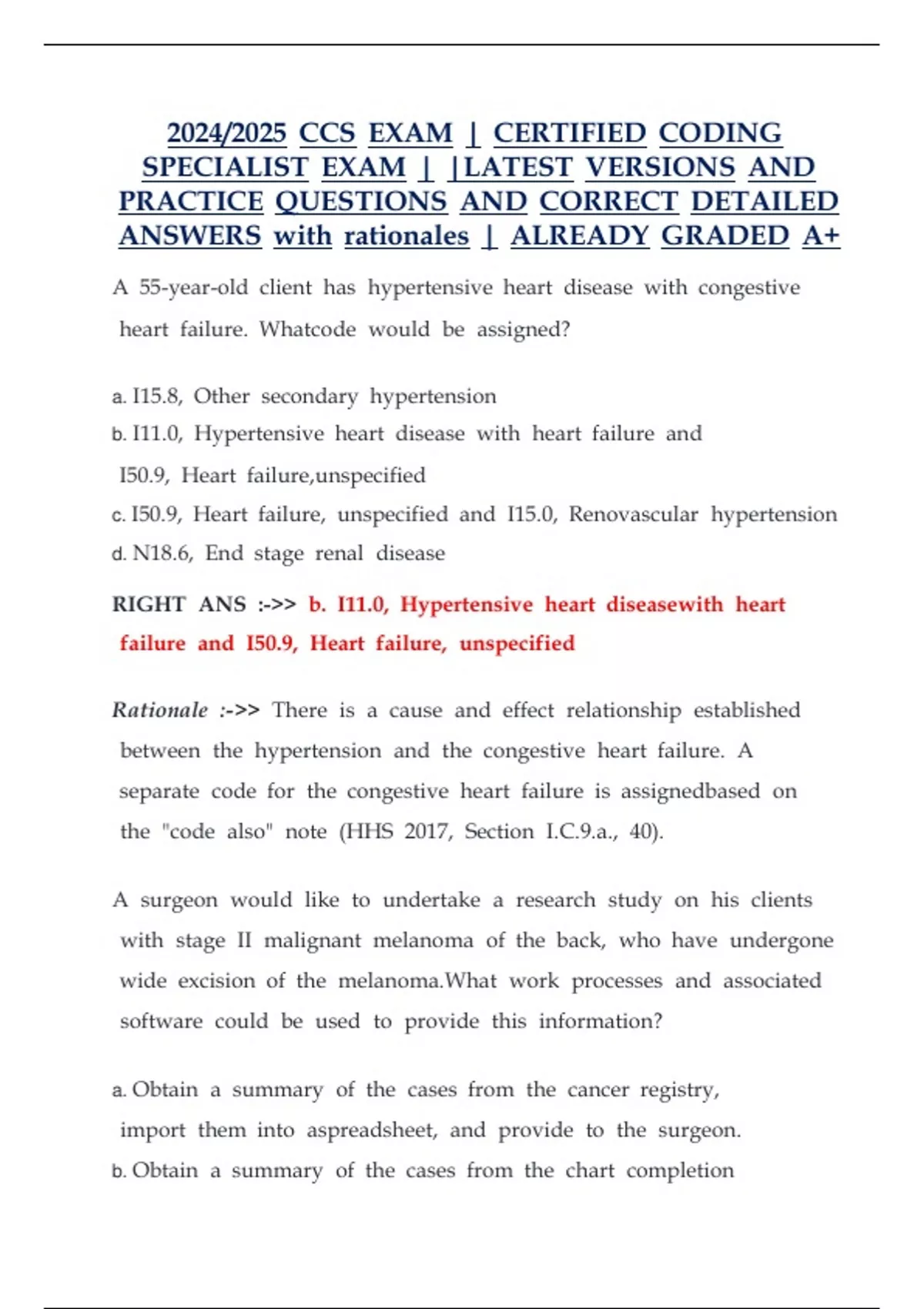 2024/2025 CCS EXAM | CERTIFIED CODING xx xx xx xx xx