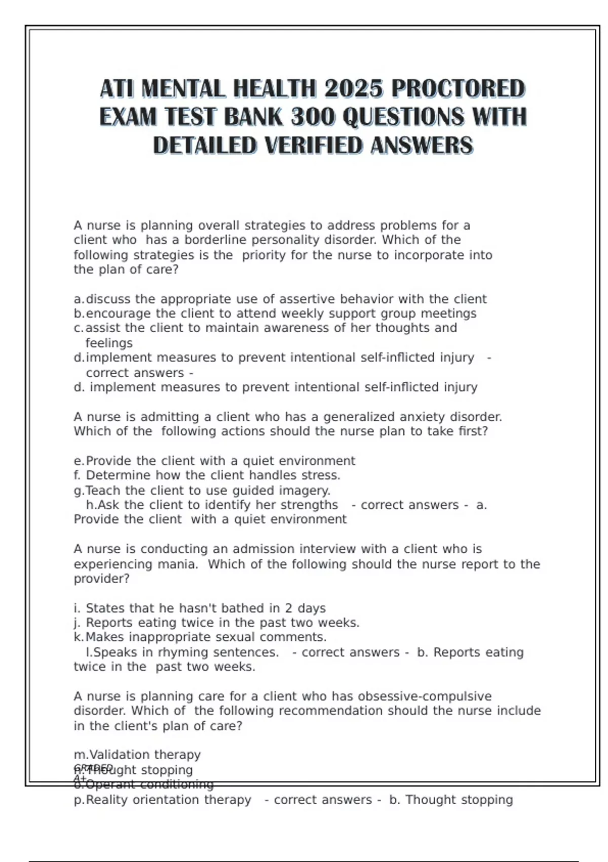 p.Reality orientation therapy - correct answers - b. Thought stopping