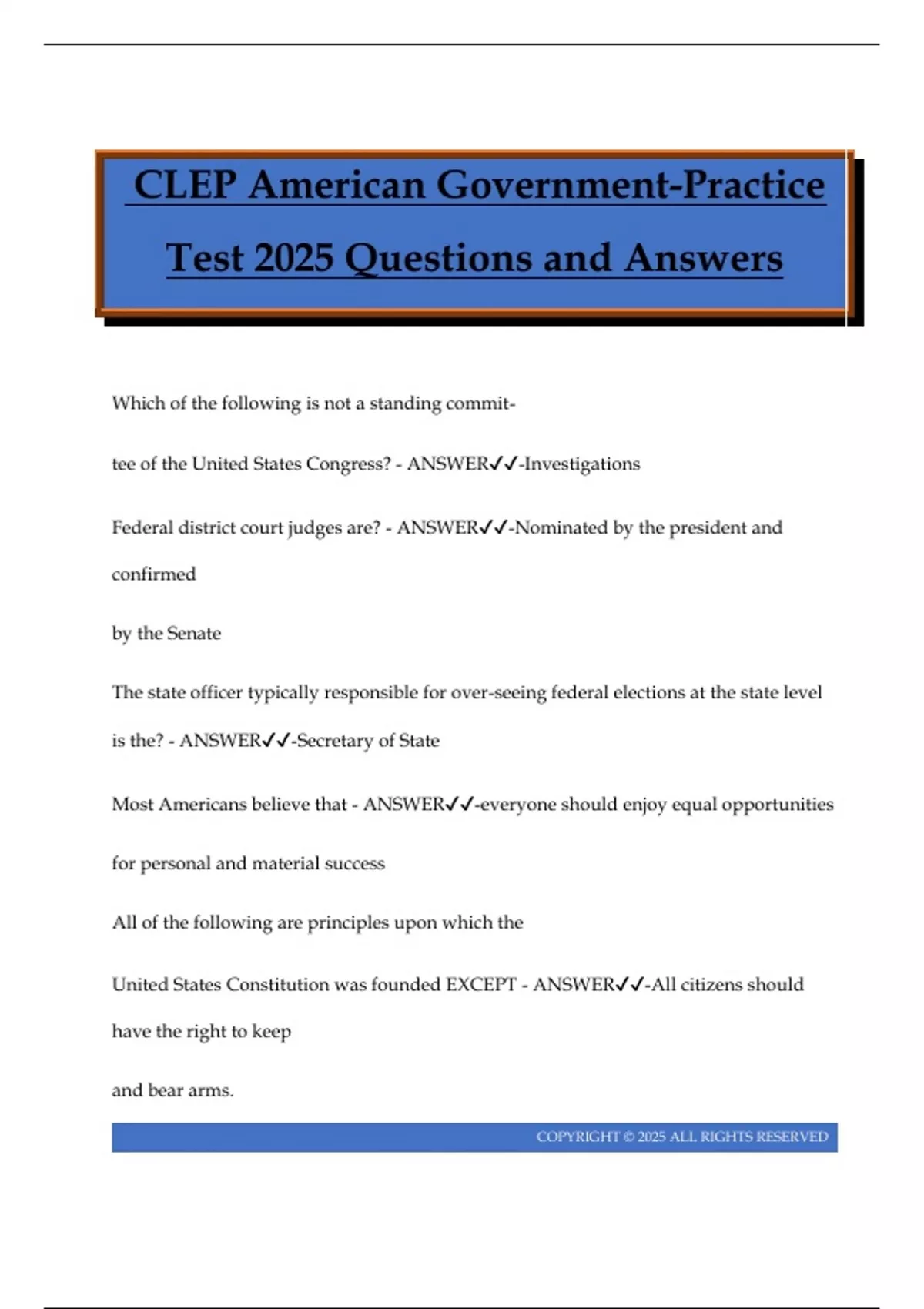CLEP American Government-Practice Test 2025 Questions and Answers