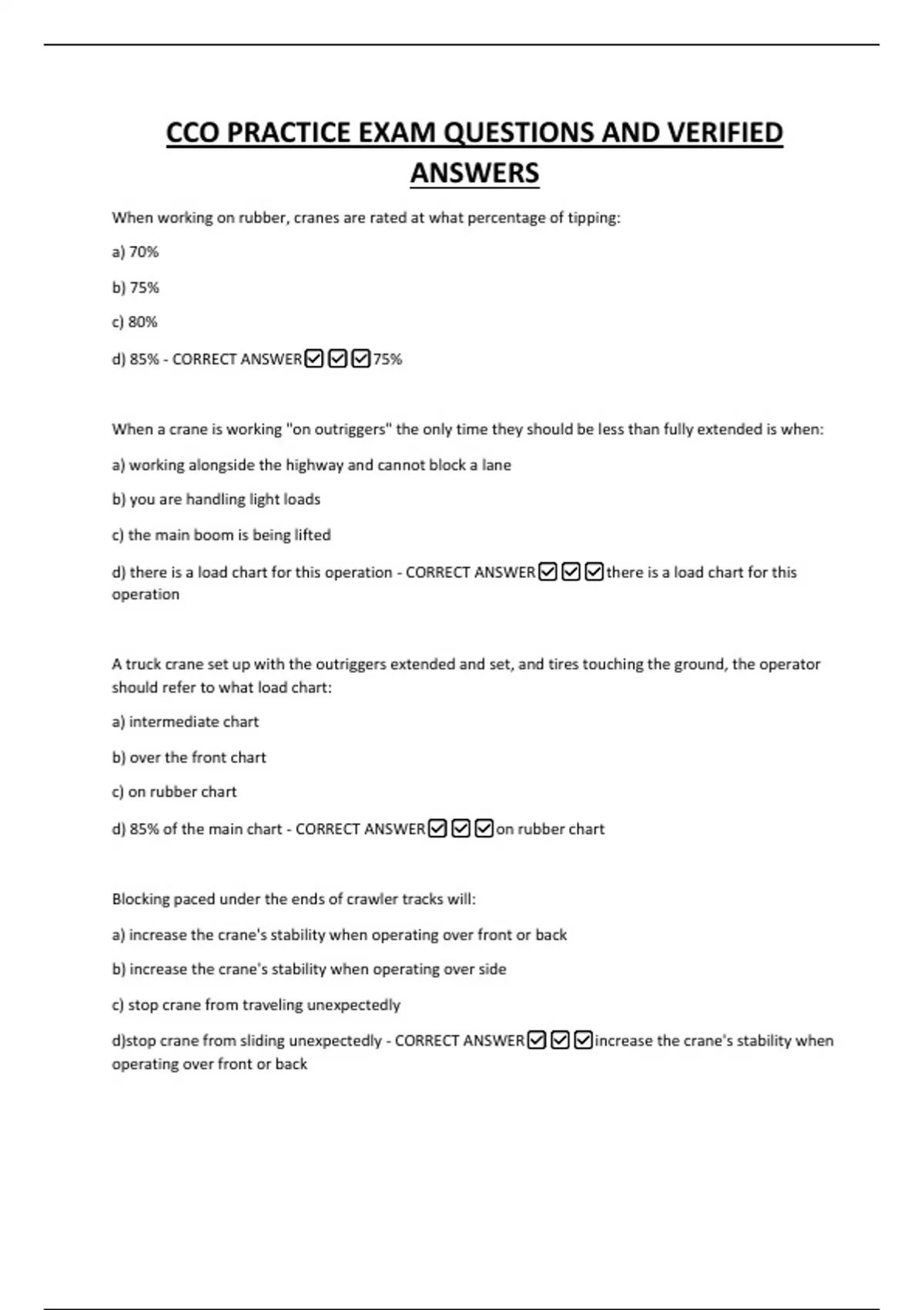 d)stop crane from sliding unexpectedly - CORRECT ANSWER✅✅✅increase the crane's stability when