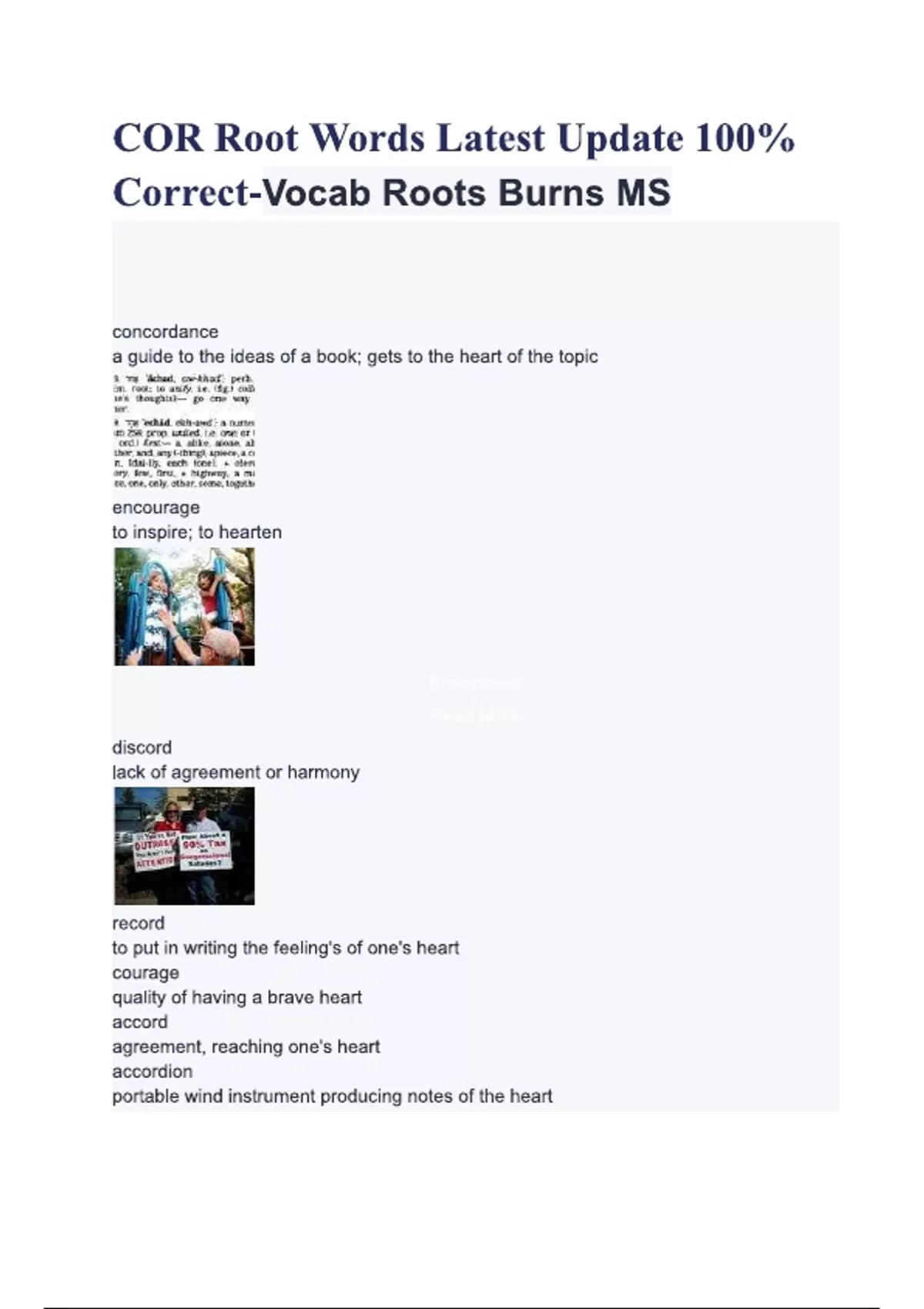 COR Root Words Latest Update 100- Correct-Vocab Roots Burns MS