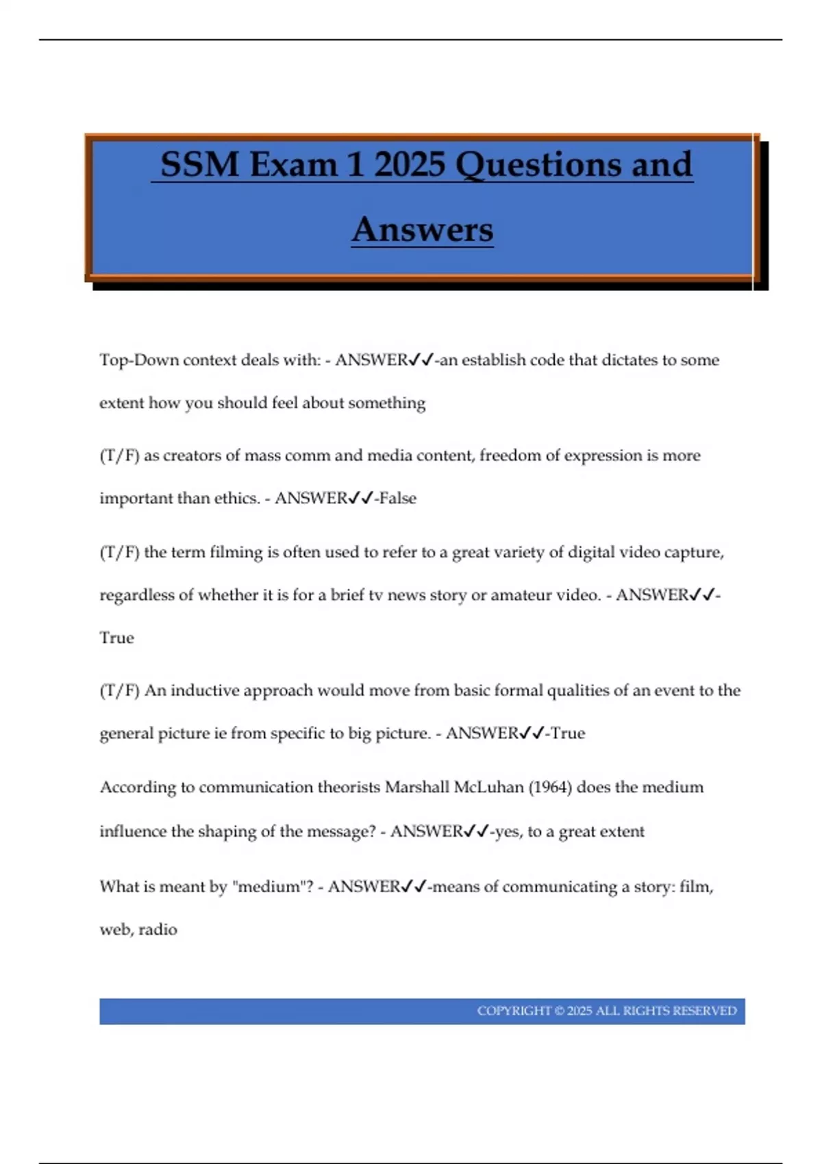 SSM Exam 1 2025 Questions and