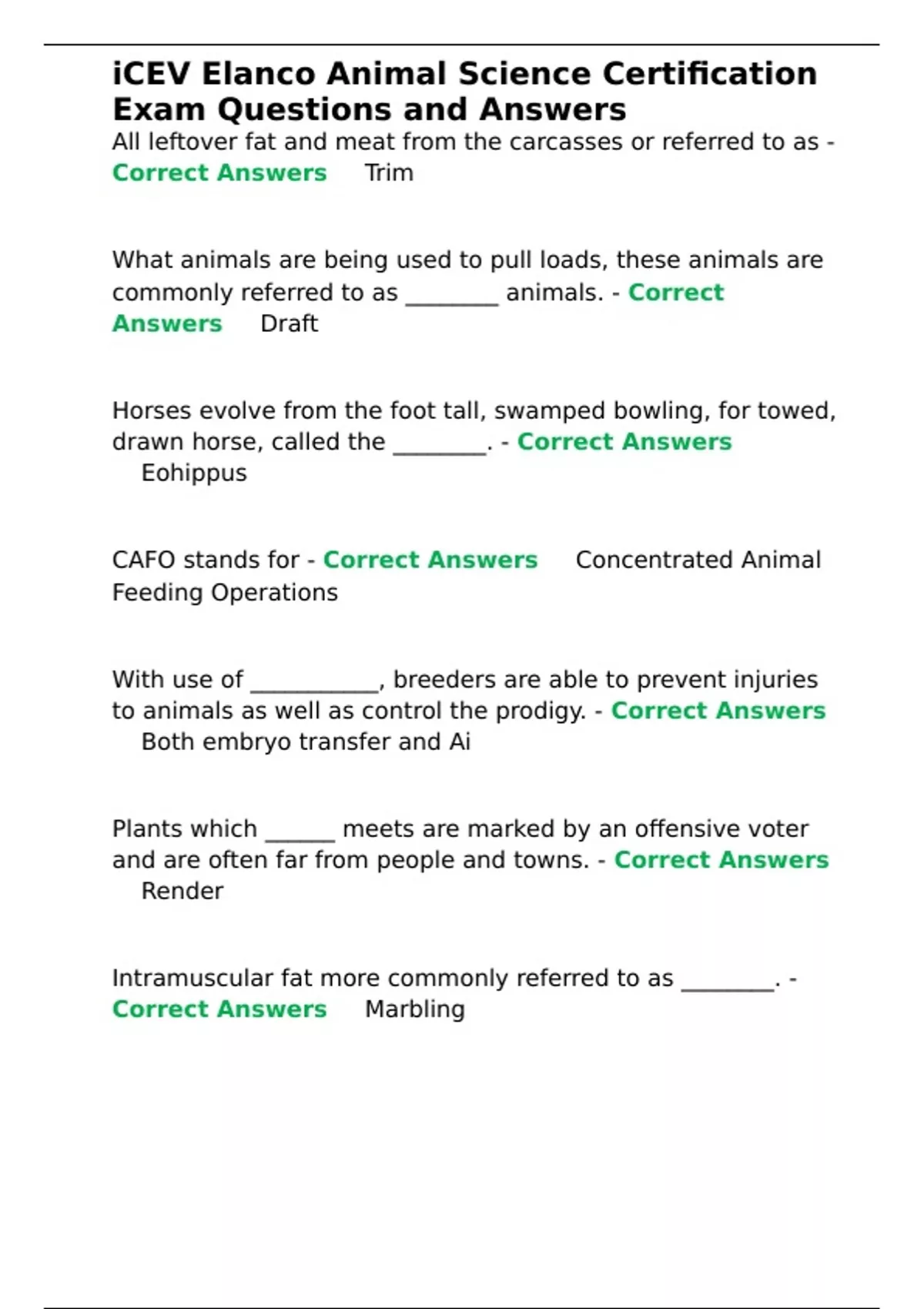 iCEV Elanco Animal Science Certification Exam Questions and Answers.