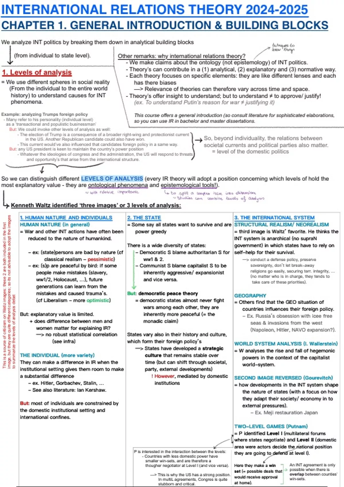 1. HUMAN NATURE AND INDIVIDUALS 2. THE STATE 3. THE INTERNATIONAL SYSTEM