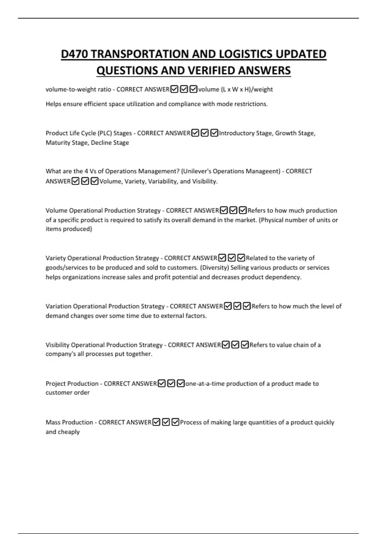 D470 TRANSPORTATION AND LOGISTICS UPDATED QUESTIONS AND VERIFIED ANSWERS