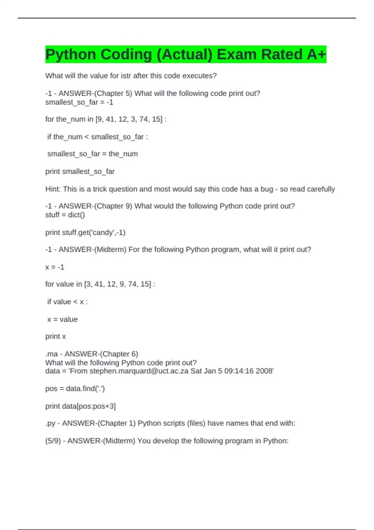 -1 - ANSWER-(Chapter 9) What would the following Python code print out?