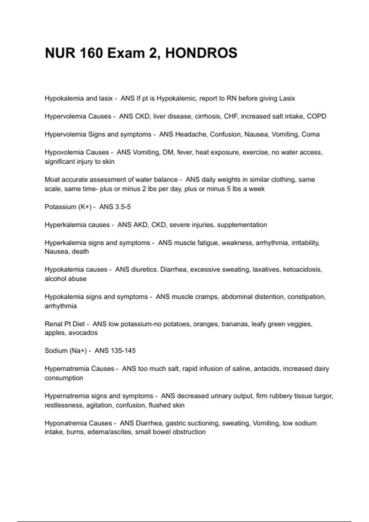 Hypervolemia Signs and symptoms - ANS Headache, Confusion, Nausea, Vomiting, Coma