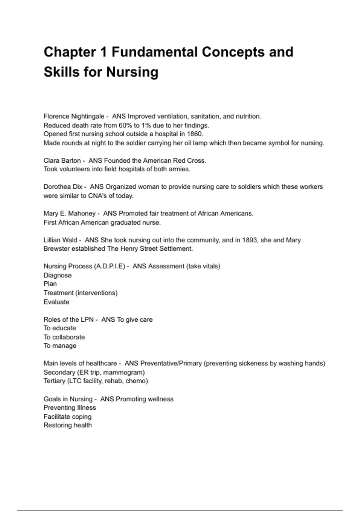Florence Nightingale - ANS Improved ventilation, sanitation, and nutrition.