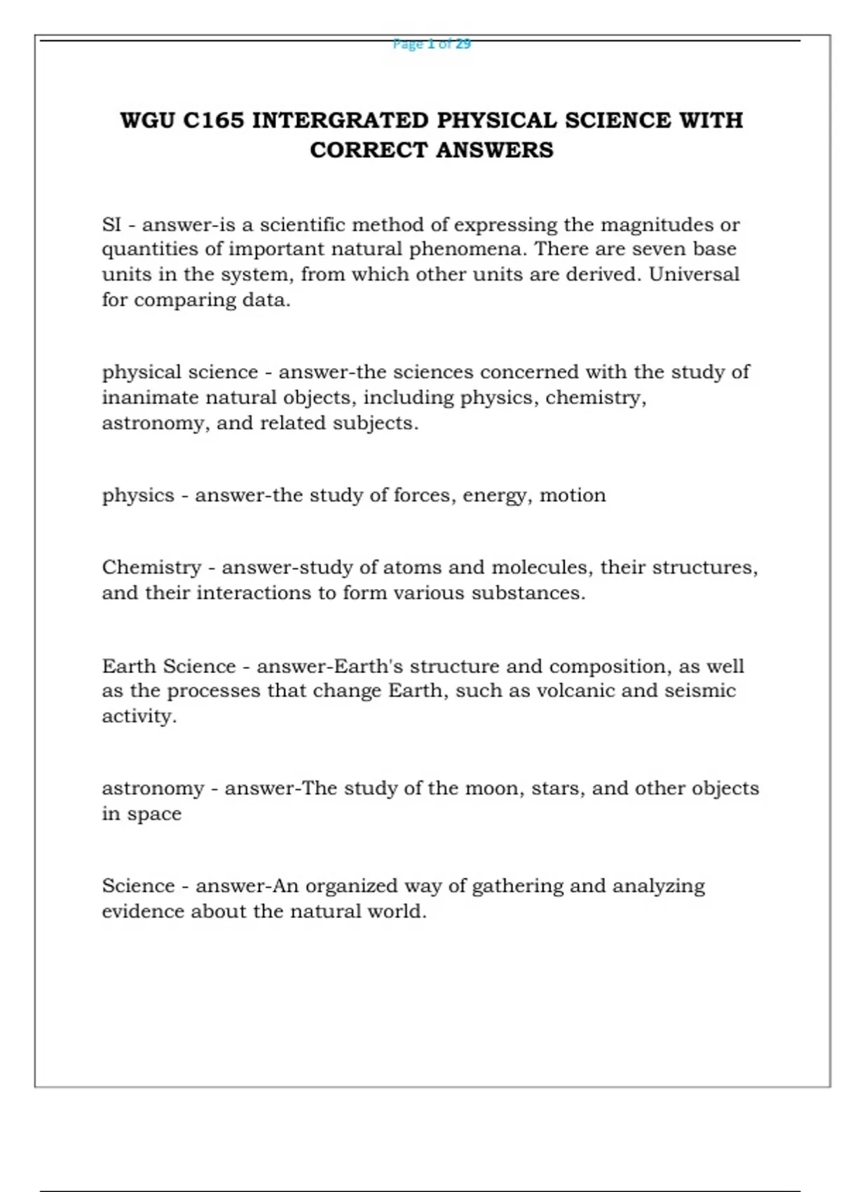 WGU C165 INTERGRATED PHYSICAL SCIENCE WITH