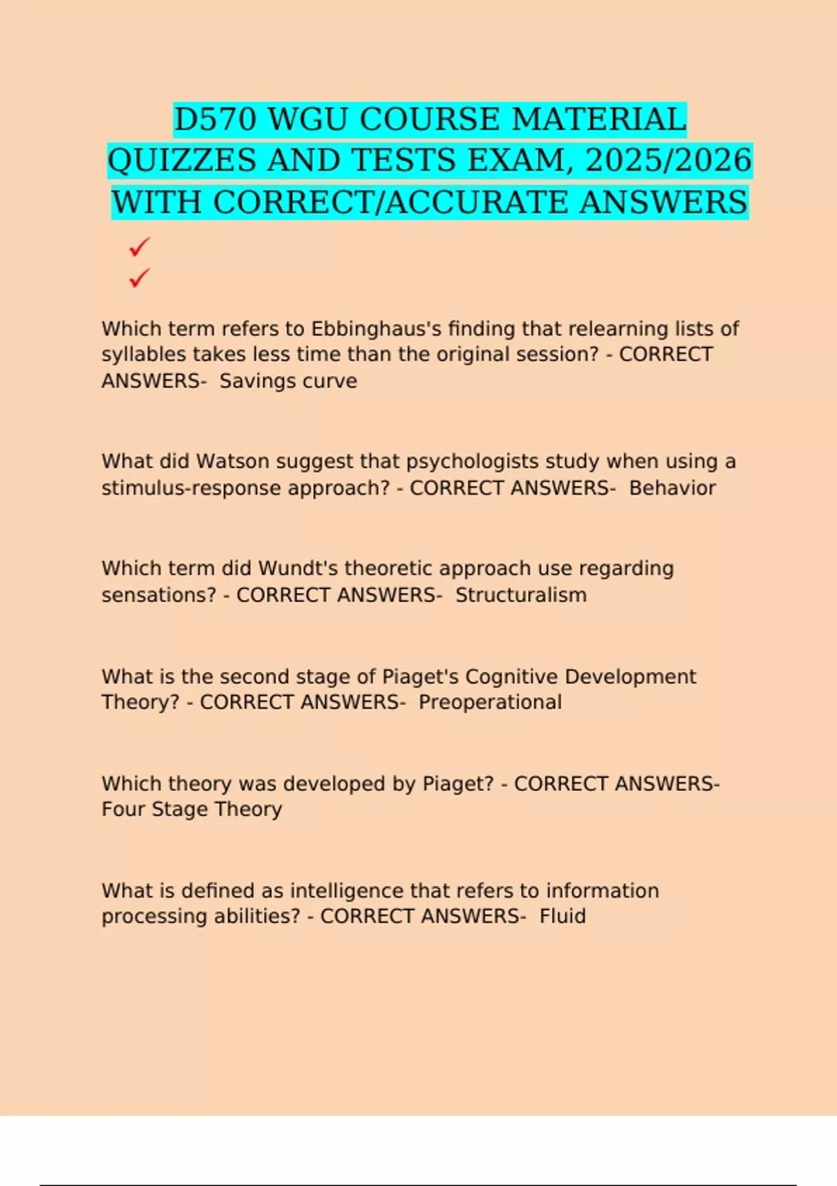 CORRECT ANSWERS- Cognitive