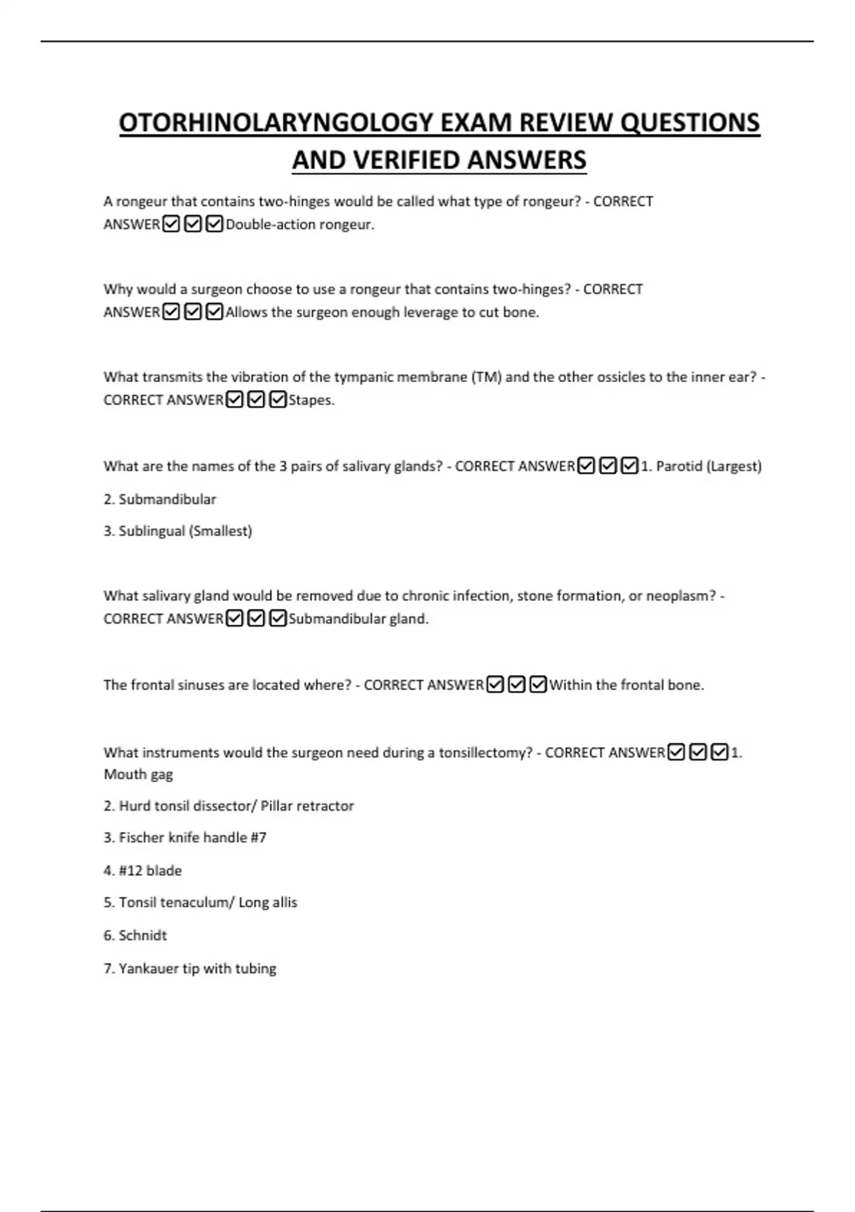 OTORHINOLARYNGOLOGY EXAM REVIEW QUESTIONS