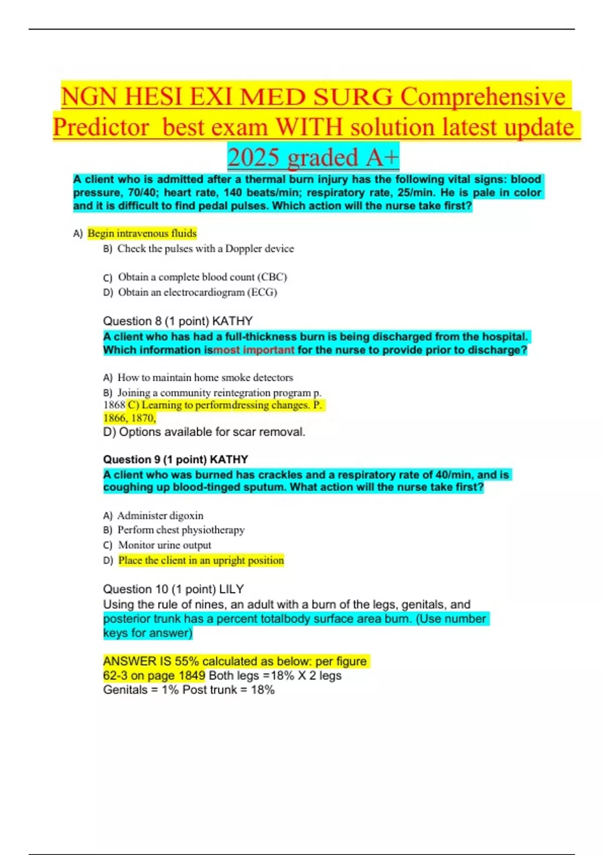 NGN HESI EXI MED SURG Comprehensive Predictor best exam WITH solution latest update 2025 graded A+