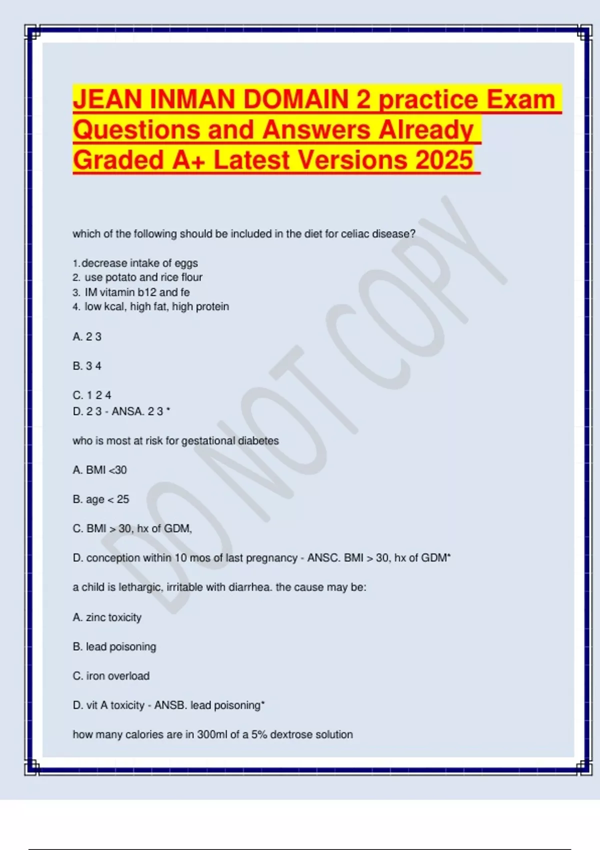 JEAN INMAN DOMAIN 2 practice Exam Questions and Answers Already Graded A+ Latest Versions 2025