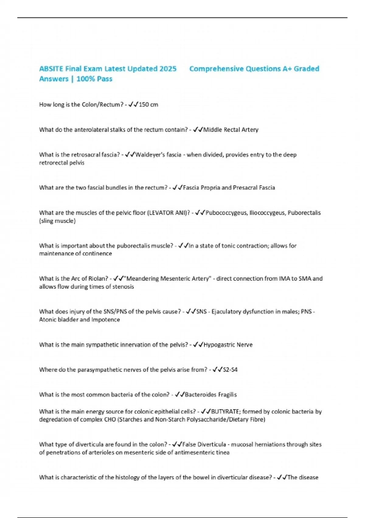 ABSITE Final Exam Latest Updated 2025 Comprehensive Questions A+ Graded Answers | 100% Pass