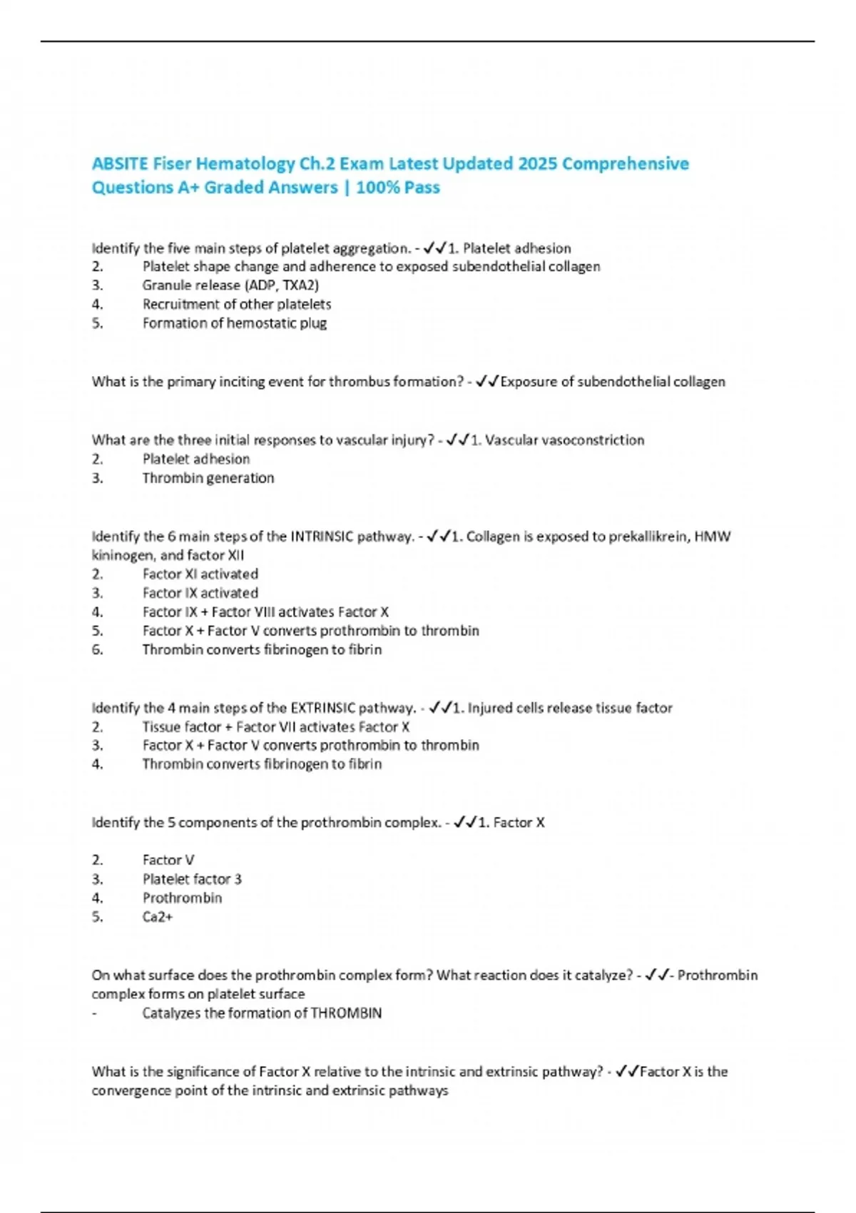 ABSITE Fiser Hematology Ch.2 Exam Latest Updated 2025 Comprehensive Questions A+ Graded Answers | 100% Pass
