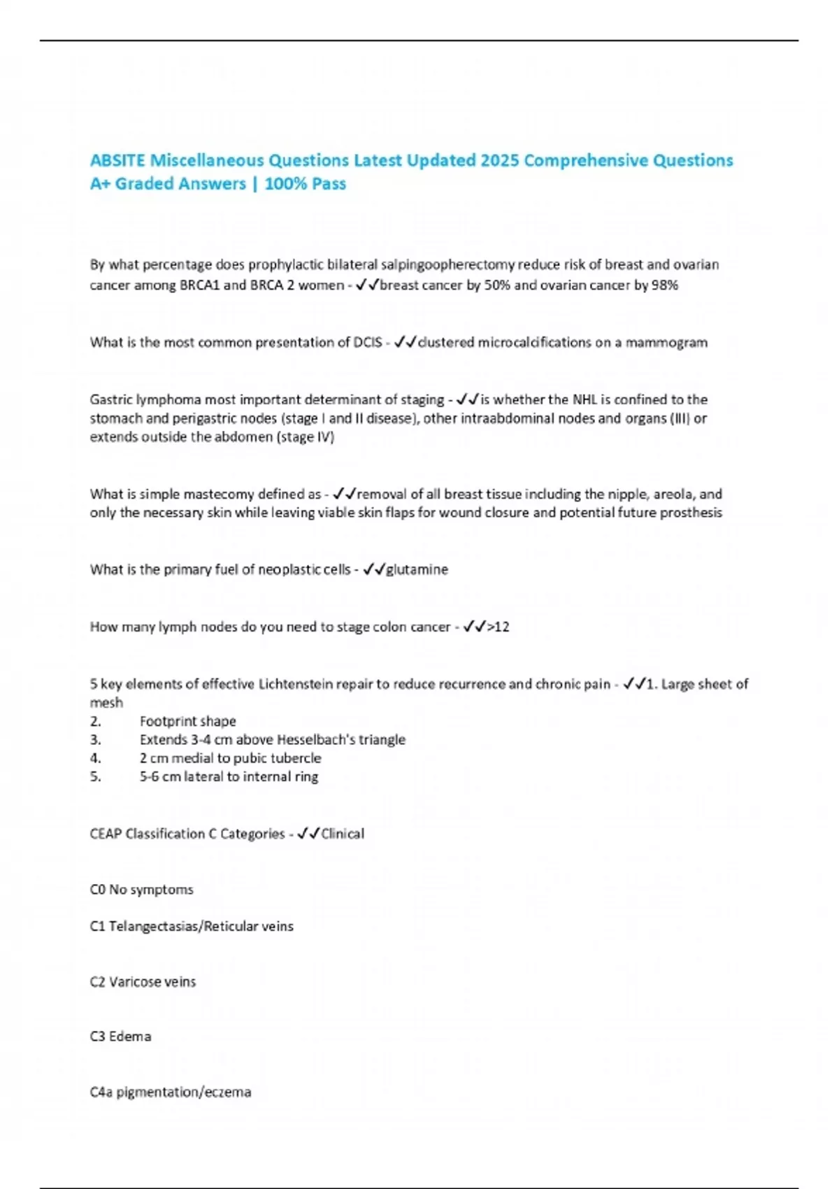 ABSITE Miscellaneous Questions Latest Updated 2025 Comprehensive Questions A+ Graded Answers | 100% Pass