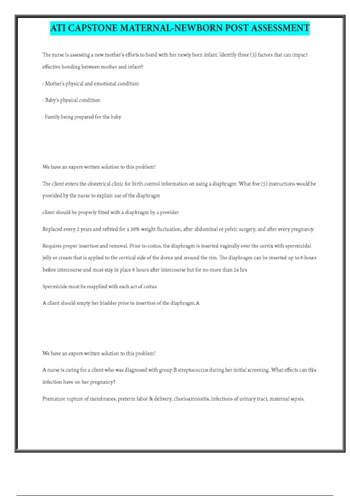 - ATI CAPSTONE MATERNAL-NEWBORN POST ASSESSMENT