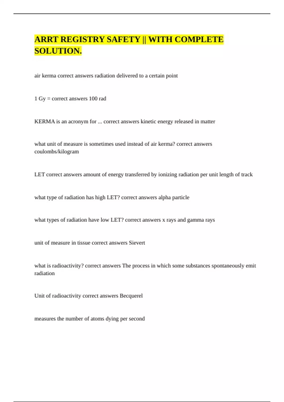 Unit of radioactivity correct answers Becquerel