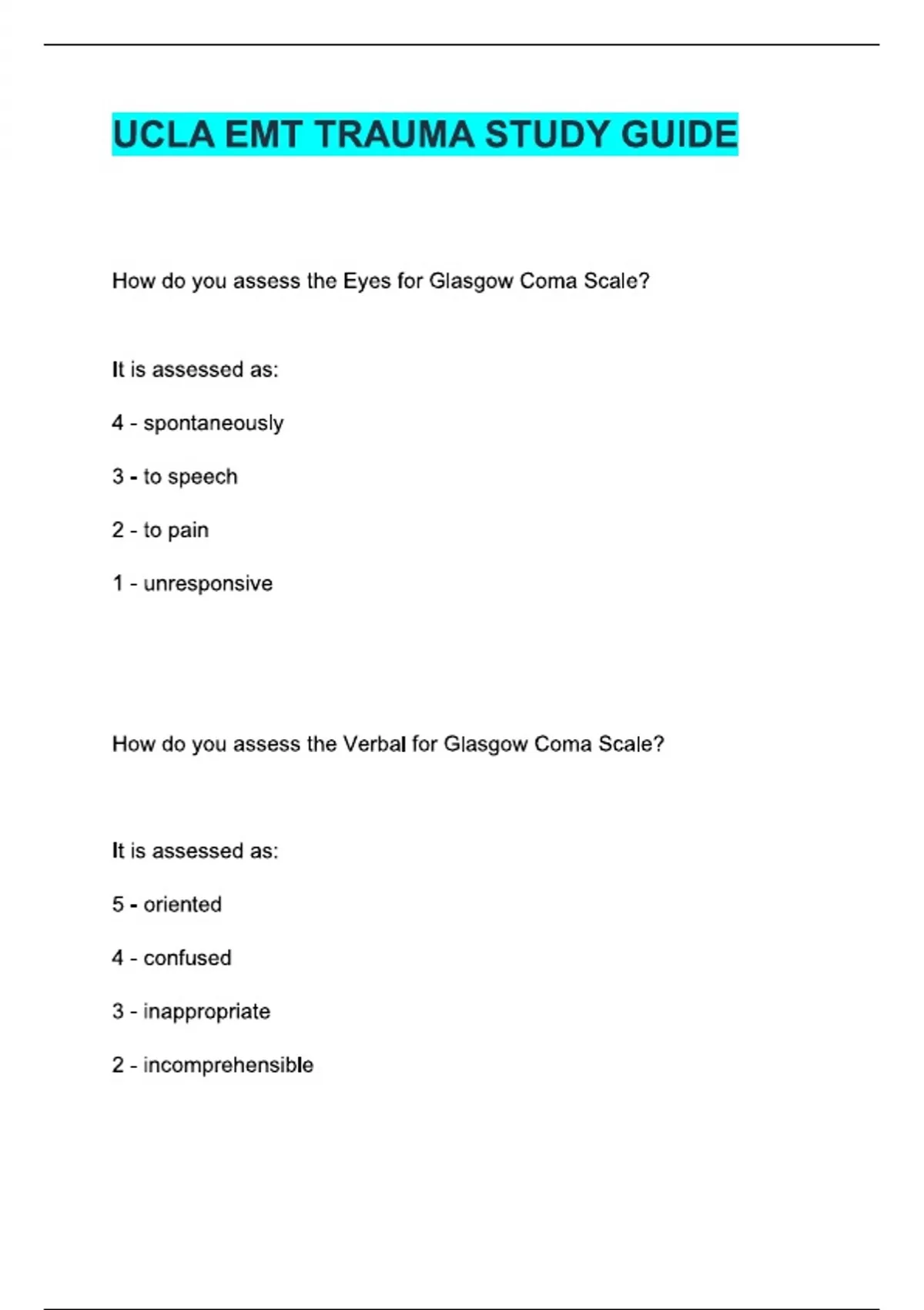 UCLA EMT TRAUMA STUDY GUIDE QUESTIONS WITH ACTUAL ANSWERS {100% CORRECT} RATED A+ 100% DISTINCTION GUARANTEE.