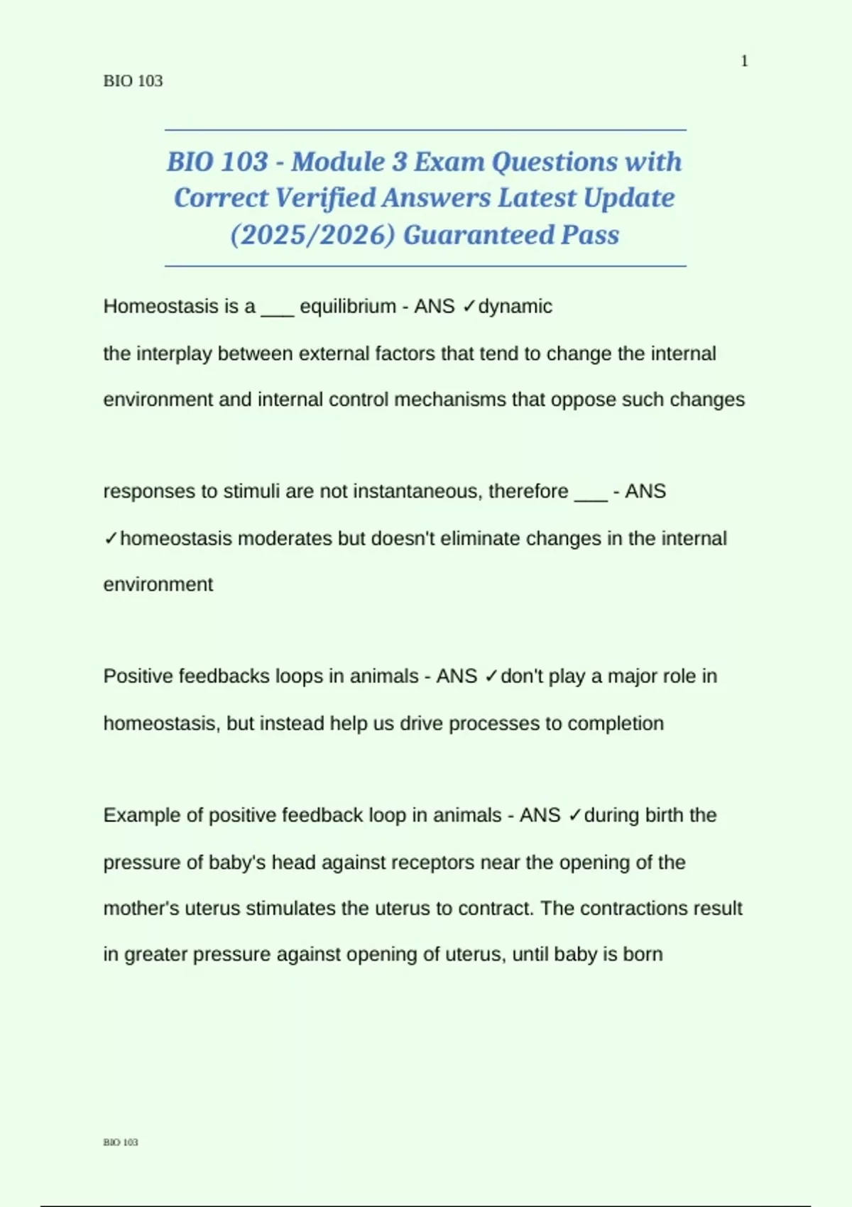 BIO 103 - Module 3 Exam Questions with