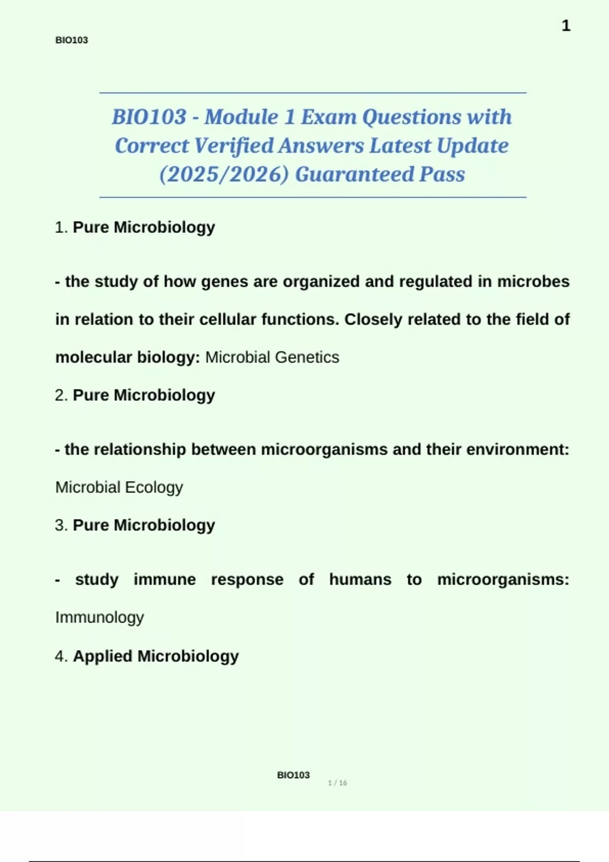 BIO103 - Module 1 Exam Questions with