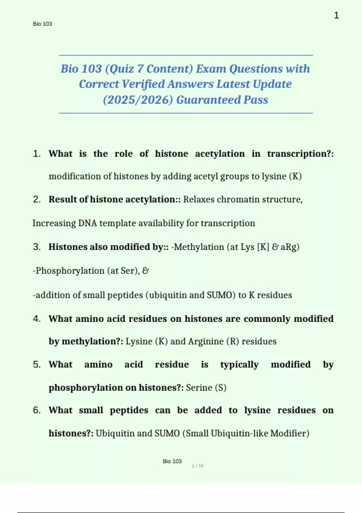 1. What is the role of histone acetylation in transcription?: