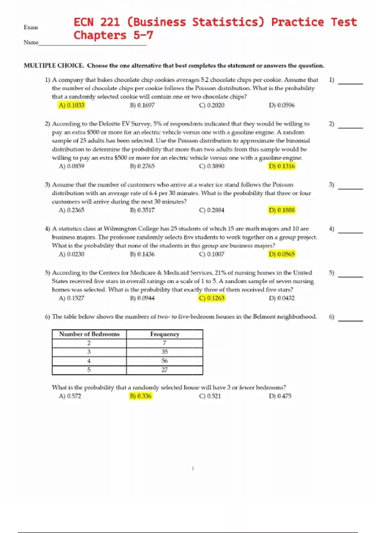 ECN 221 (Business Statistics) Practice Test Chapters 5-7 | Arizona State University | Verified Questions & Answers