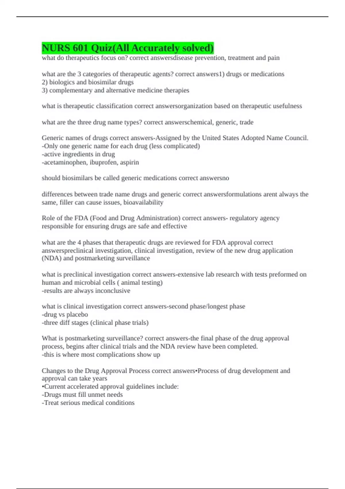 Changes to the Drug Approval Process correct answers•Process of drug development and