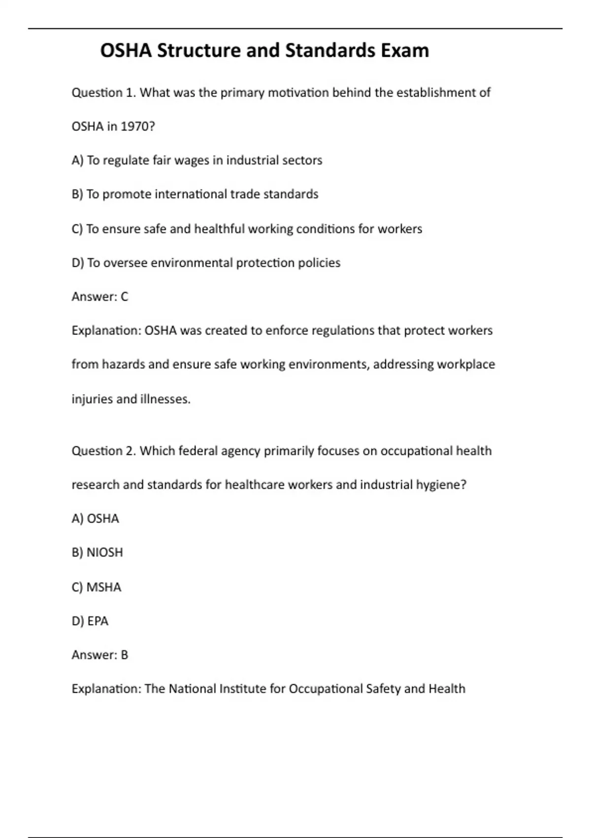 Explanation: OSHA's primary mission is to ensure safe and healthful working