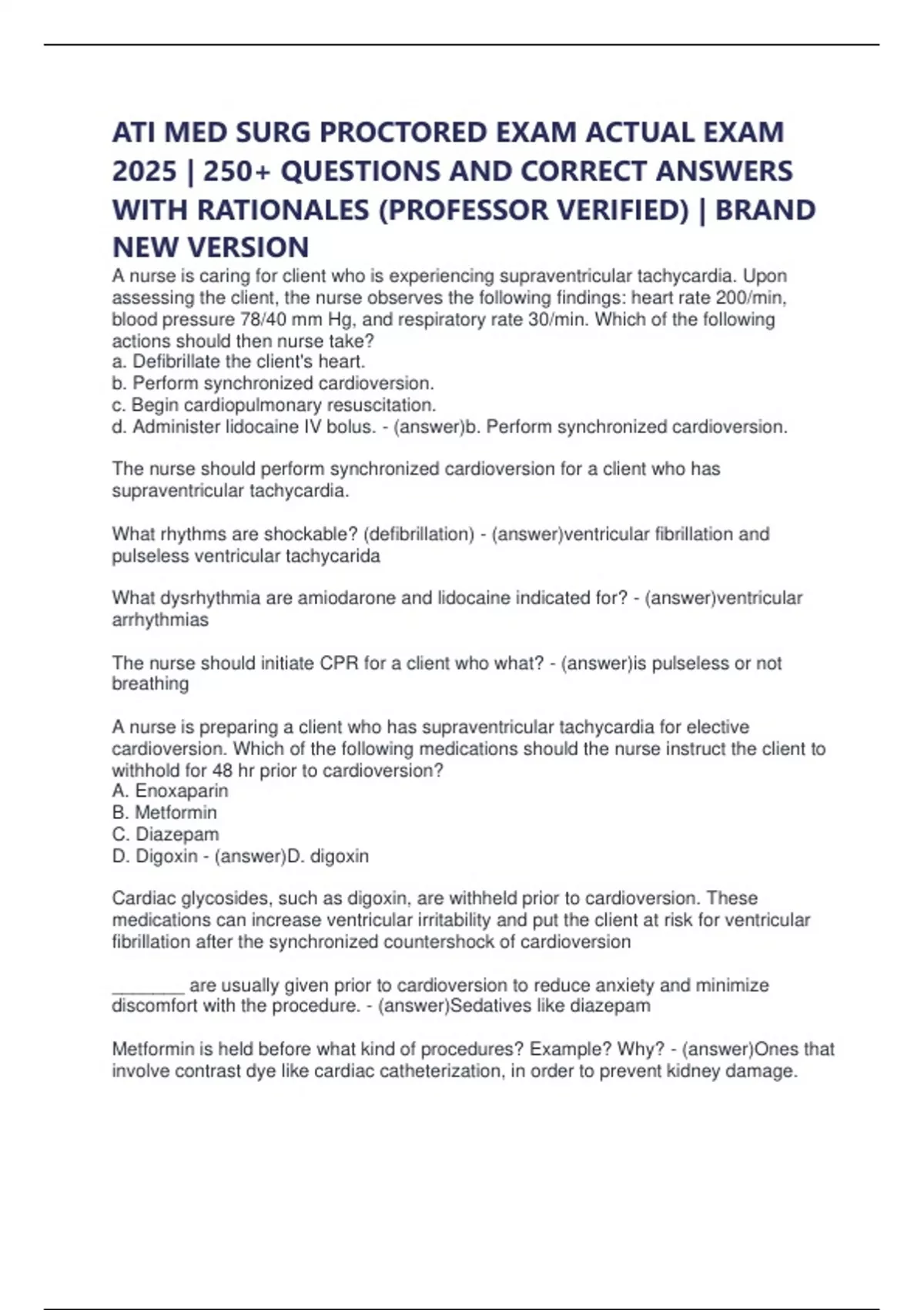 What kind of drugs are withheld prior to cardioversion? - (answer)cardiac glycosides like