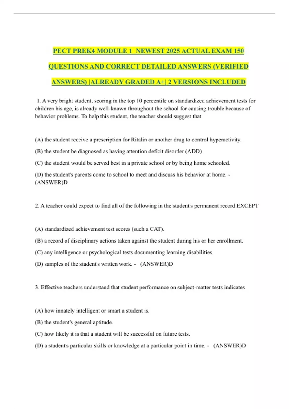 QUESTIONS AND CORRECT DETAILED ANSWERS (VERIFIED