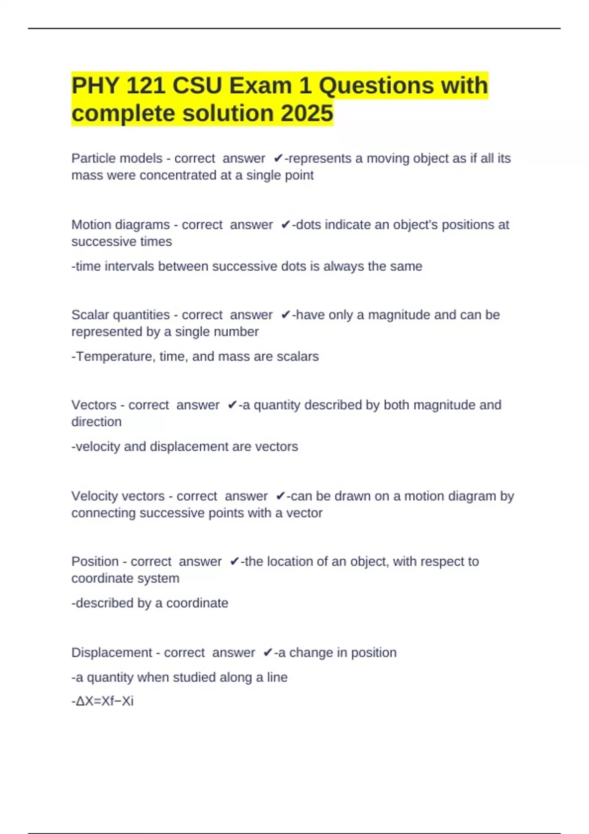 Scalar quantities - correct answer ✔-have only a magnitude and can be
