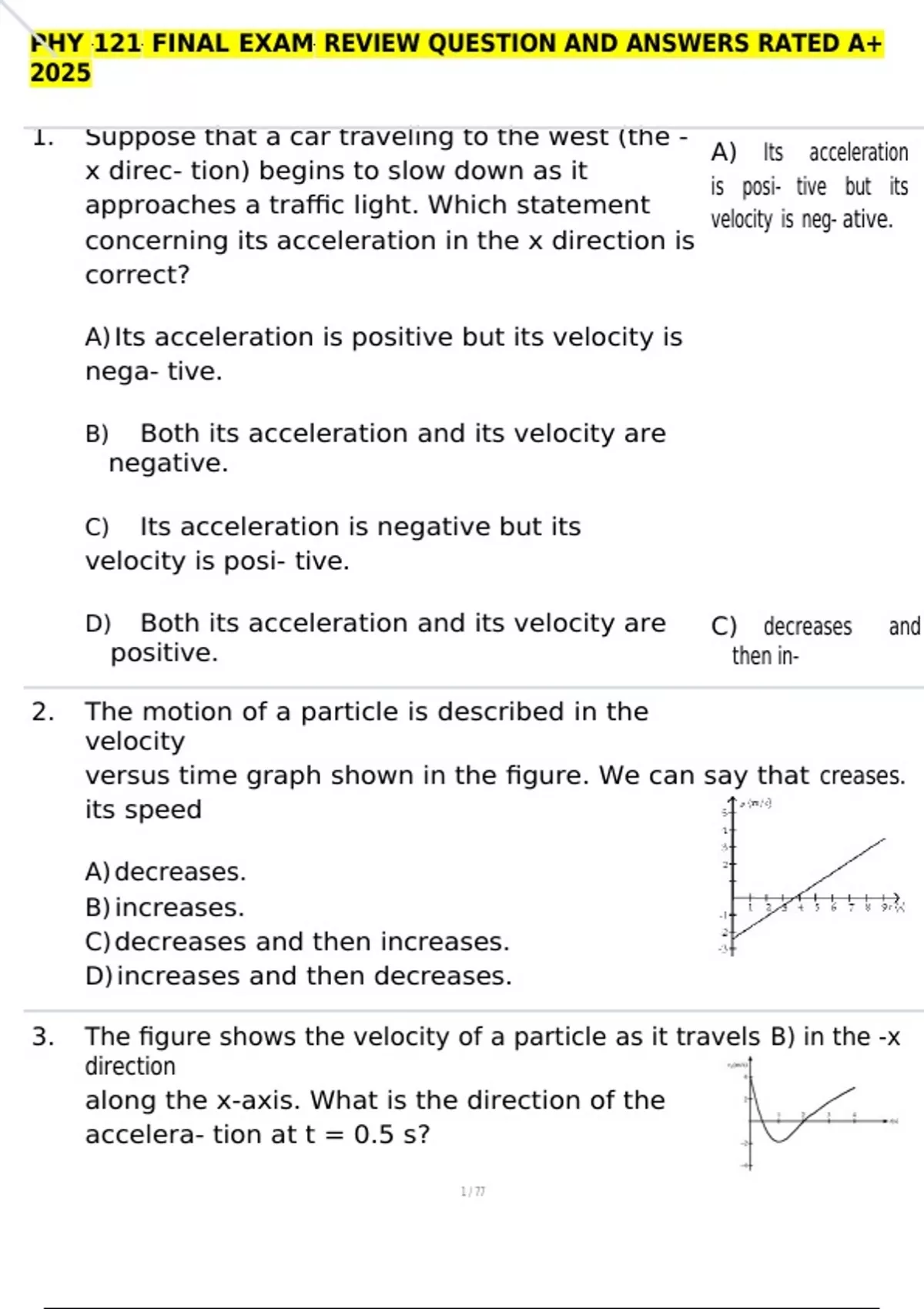 , PHY 121 FINAL EXAM REVIEW QUESTION AND ANSWERS RATED A+