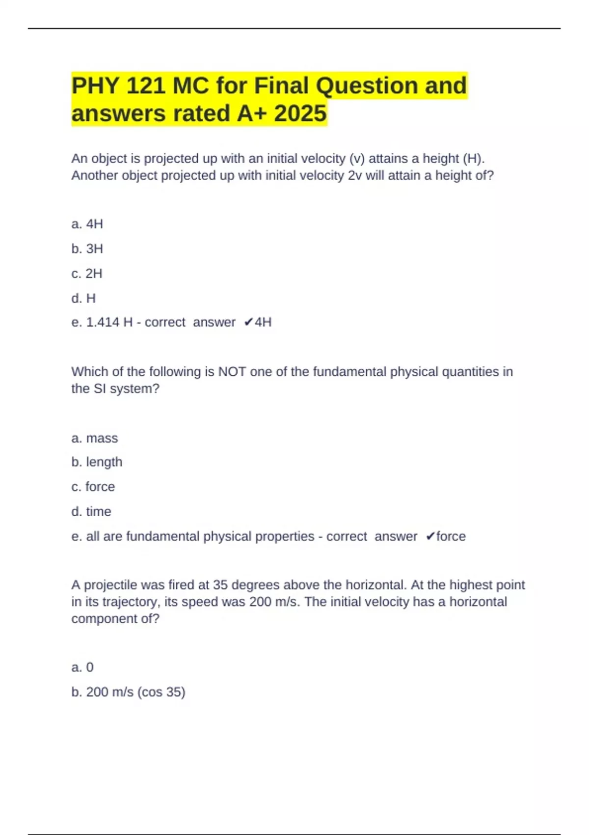 A projectile was fired at 35 degrees above the horizontal. At the highest point