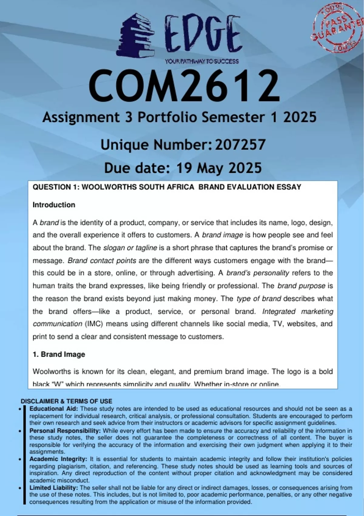 COM2612 Assignment 3 PORTFOLIO (ANSWERS) Semester 1 2025 - DISTINCTION GUARANTEED
