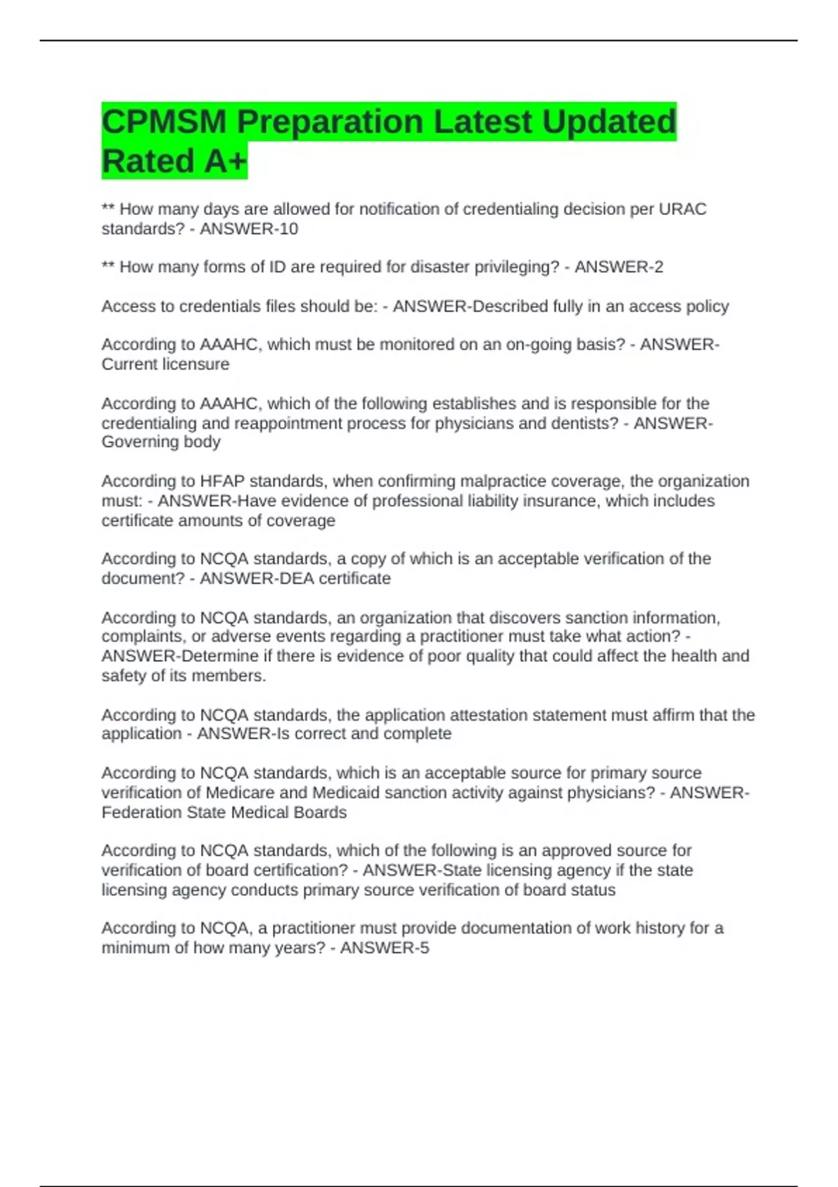 180 days prior to the credentialing decision? - ANSWER-Lifetime board certification