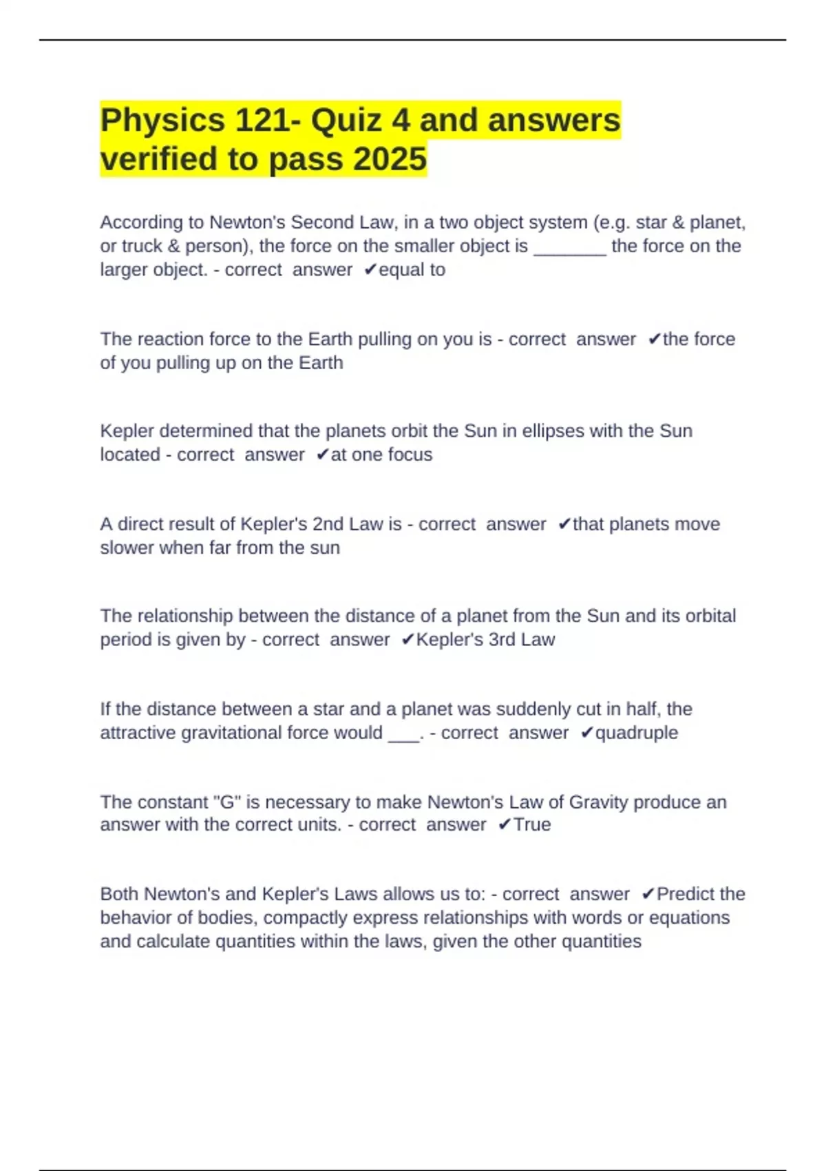 Both Newton's and Kepler's Laws allows us to: - correct answer ✔Predict the