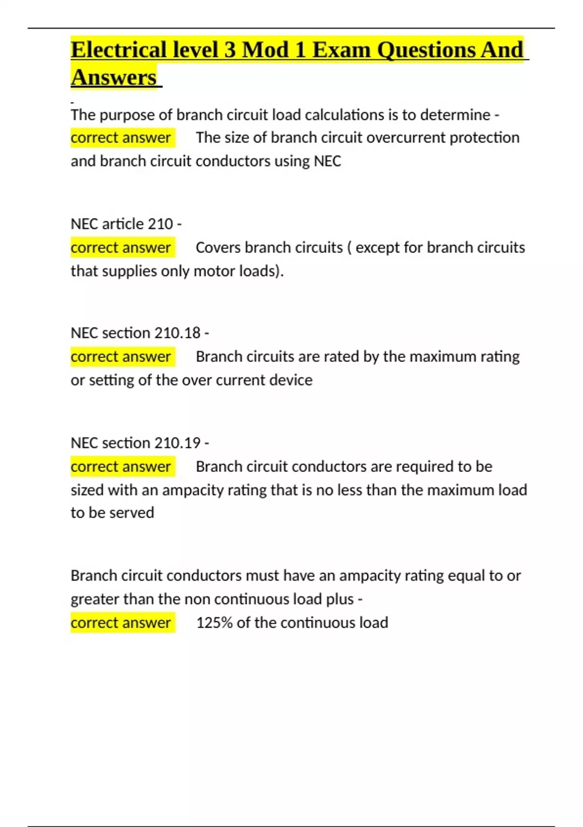 , Electrical level 3 Mod 1 Exam Questions And