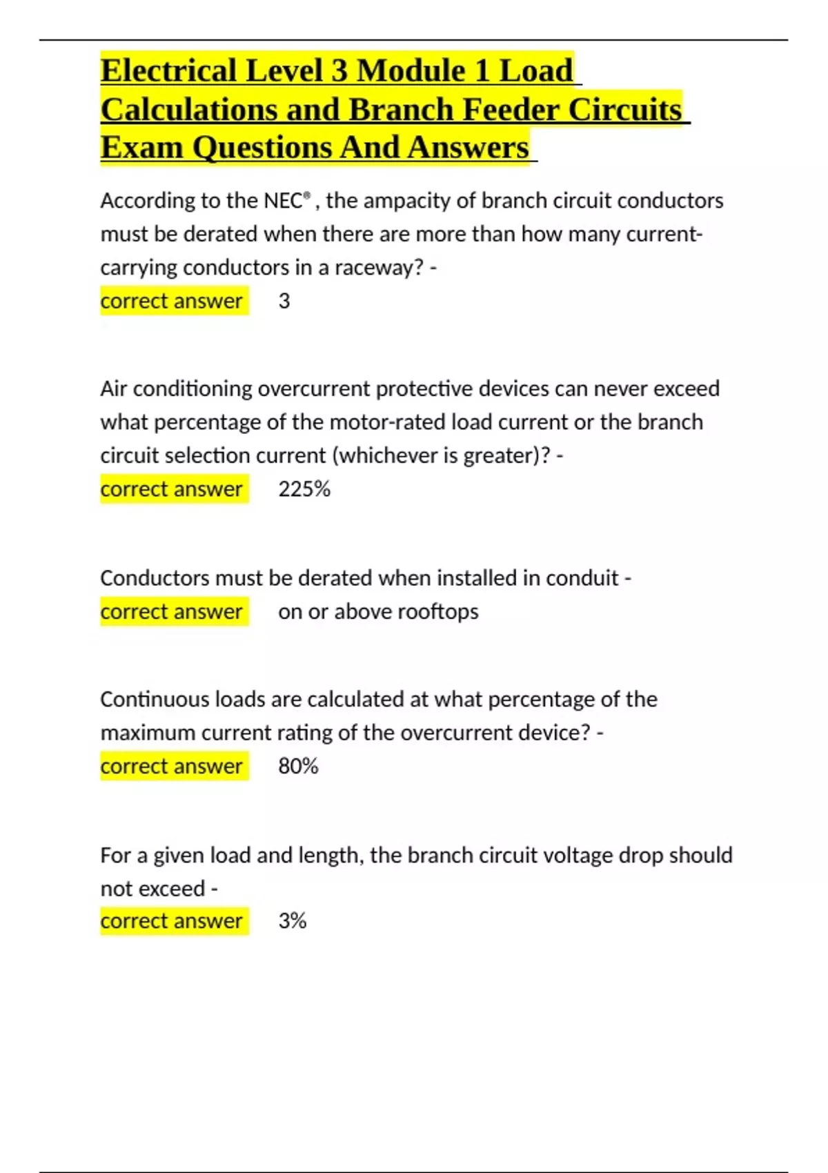 Electrical Level 3 Module 1 Load Calculations and Branch Feeder Circuits Exam Questions And Answers.docx