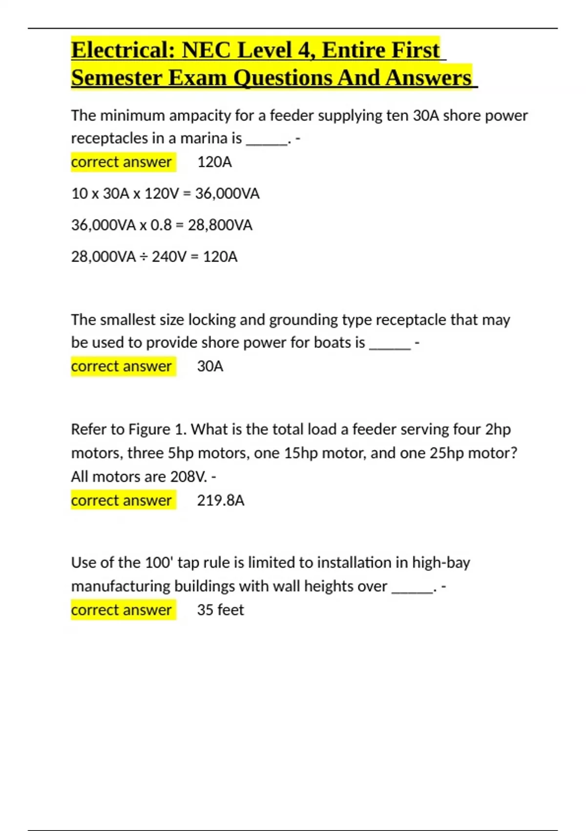 Electrical NEC Level 4, Entire First Semester Exam Questions And A
