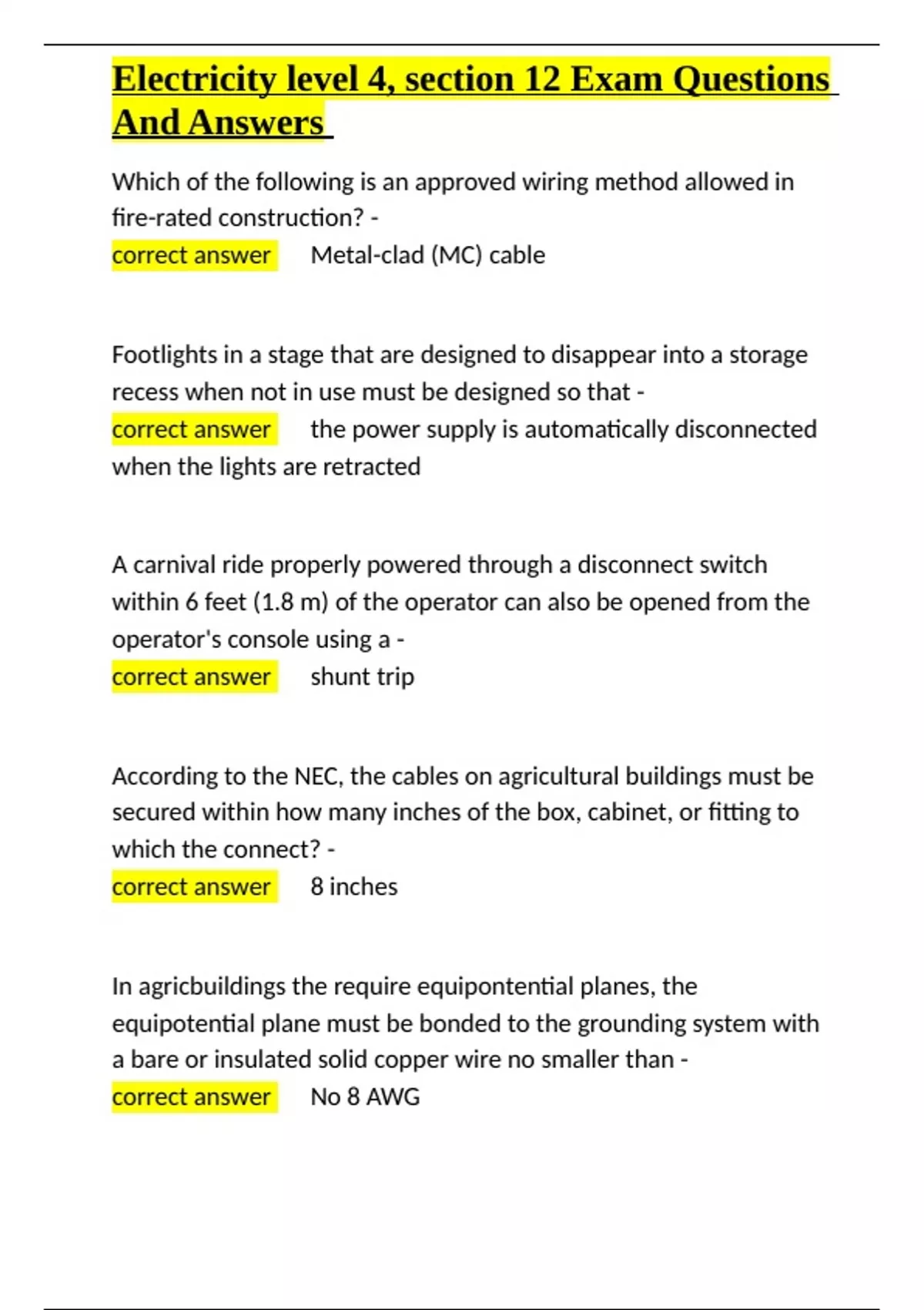 Electricity level 4, section 12 Exam Questions And A