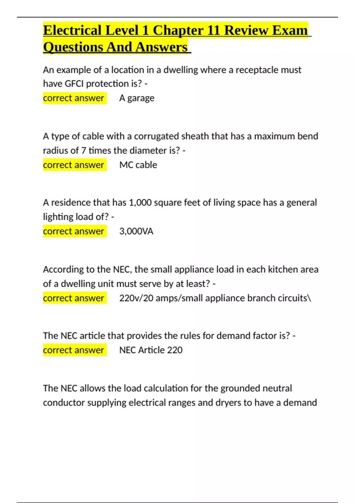 , Electrical Level 1 Chapter 11 Review Exam