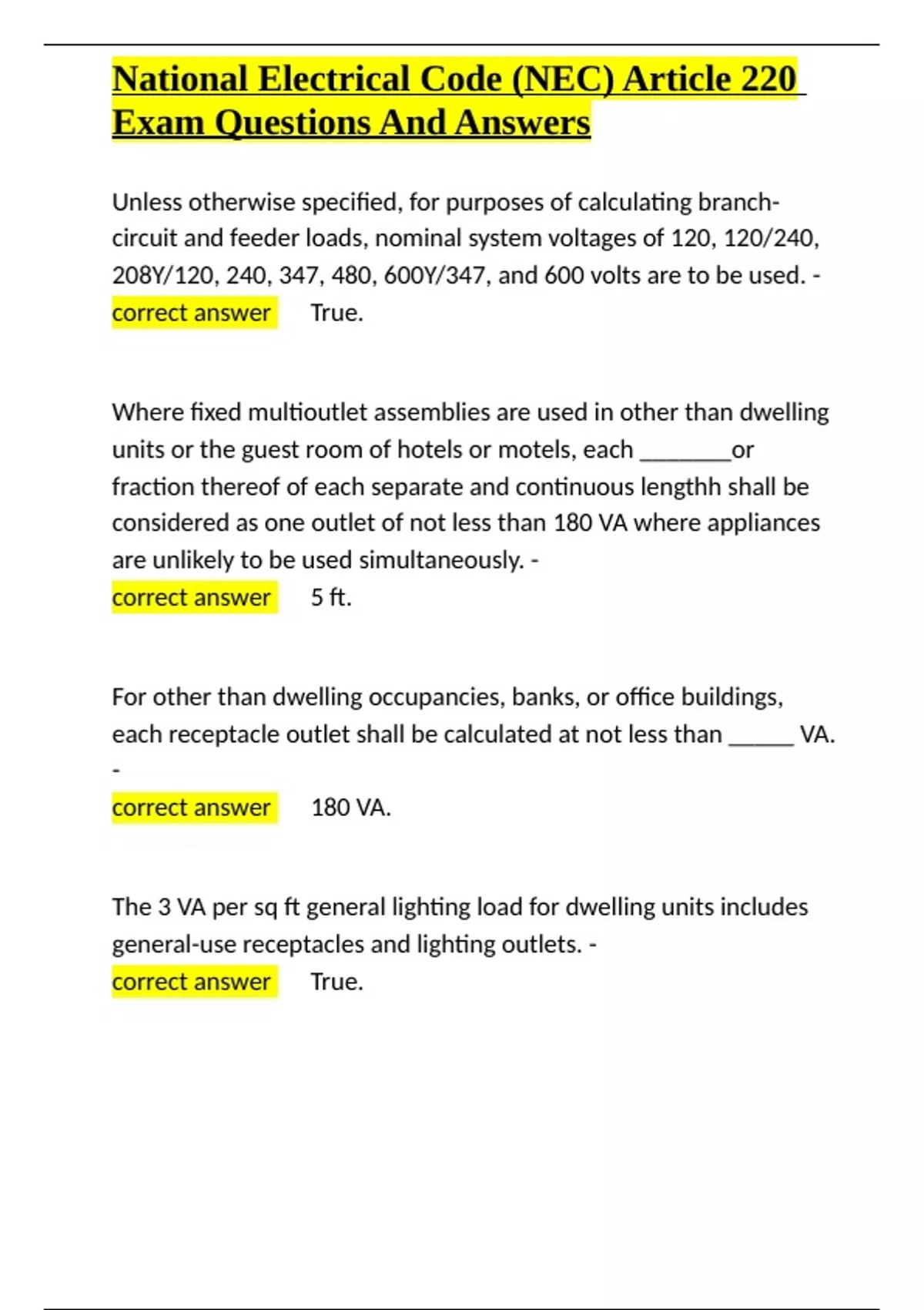 National Electrical Code (NEC) Article 220 Exam Questions And Answers.docx