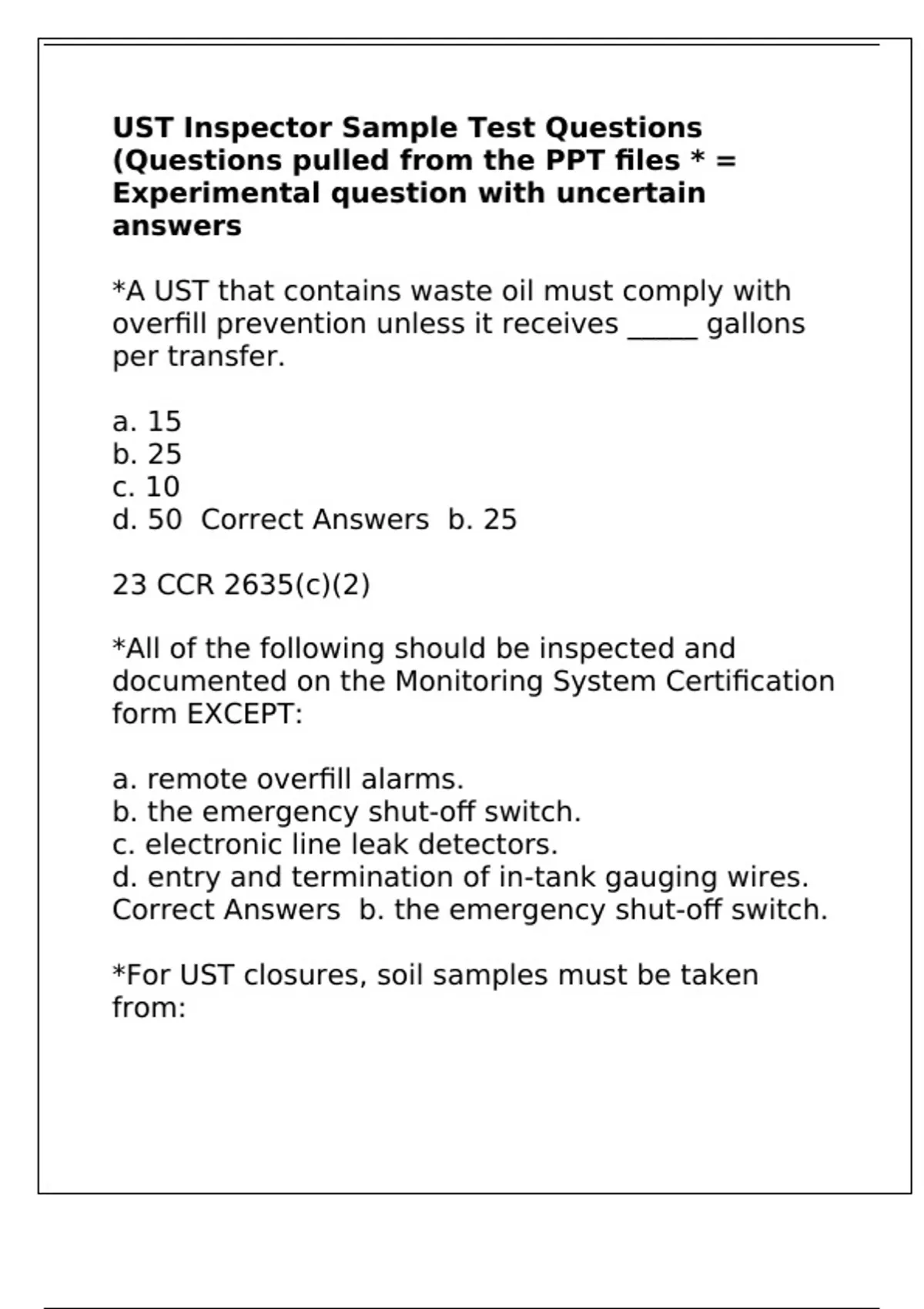 *For UST closures, soil samples must be taken
