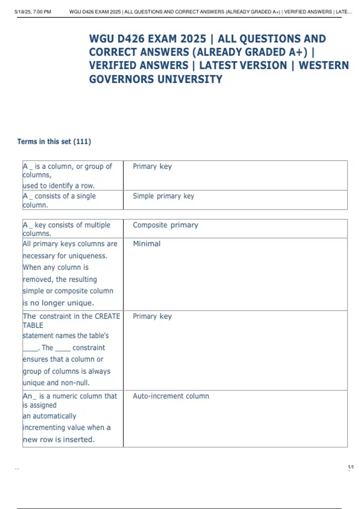 , 5/18/25, 7:00 PM WGU D426 EXAM 2025 | ALL QUESTIONS AND CORRECT ANSWERS (ALREADY GRADED A+) | VERIFIED ANSWERS | LATE…