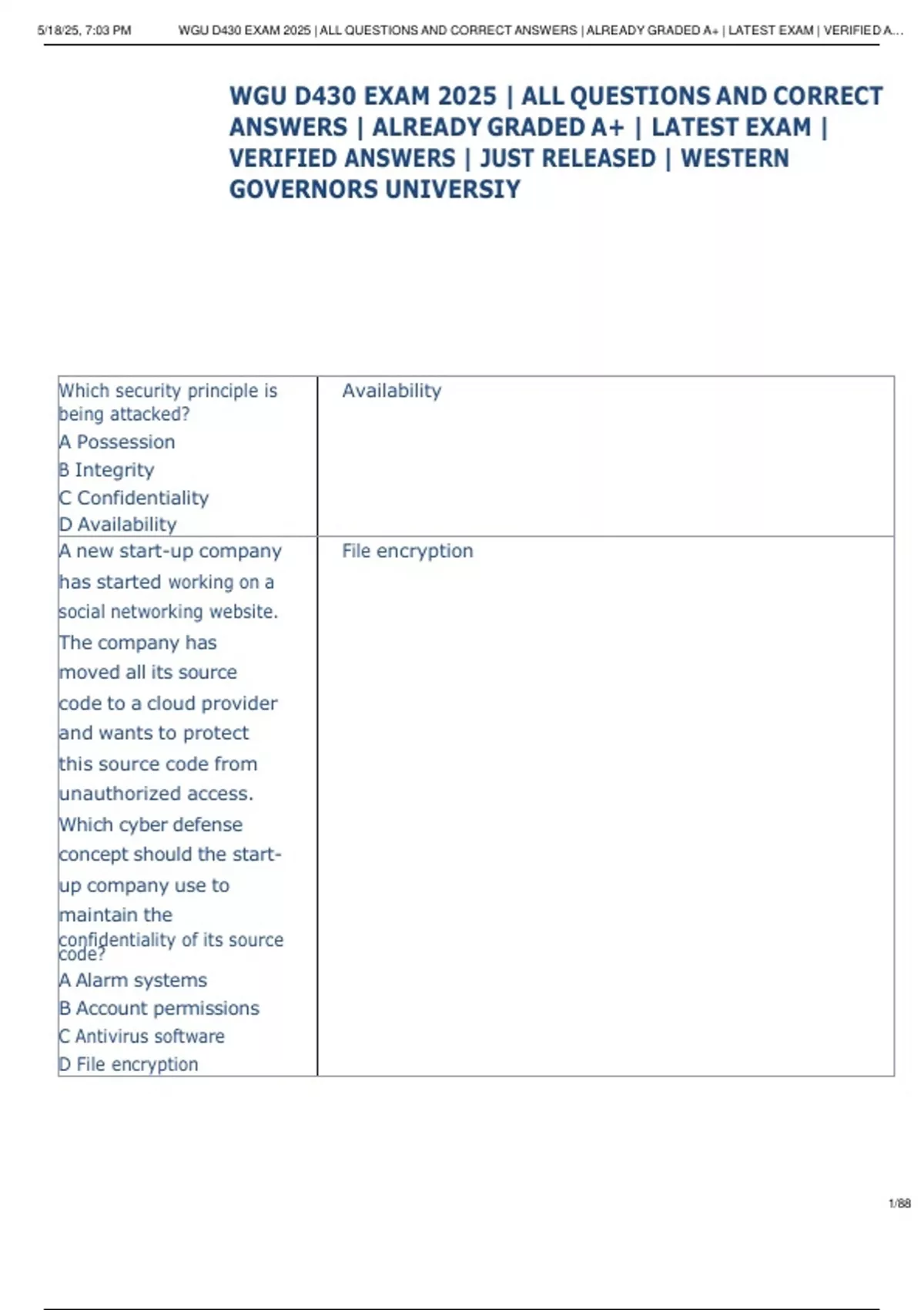 , 5/18/25, 7:03 PM WGU D430 EXAM 2025 | ALL QUESTIONS AND CORRECT ANSWERS | ALREADY GRADED A+ | LATEST EXAM | VERIFIED A…