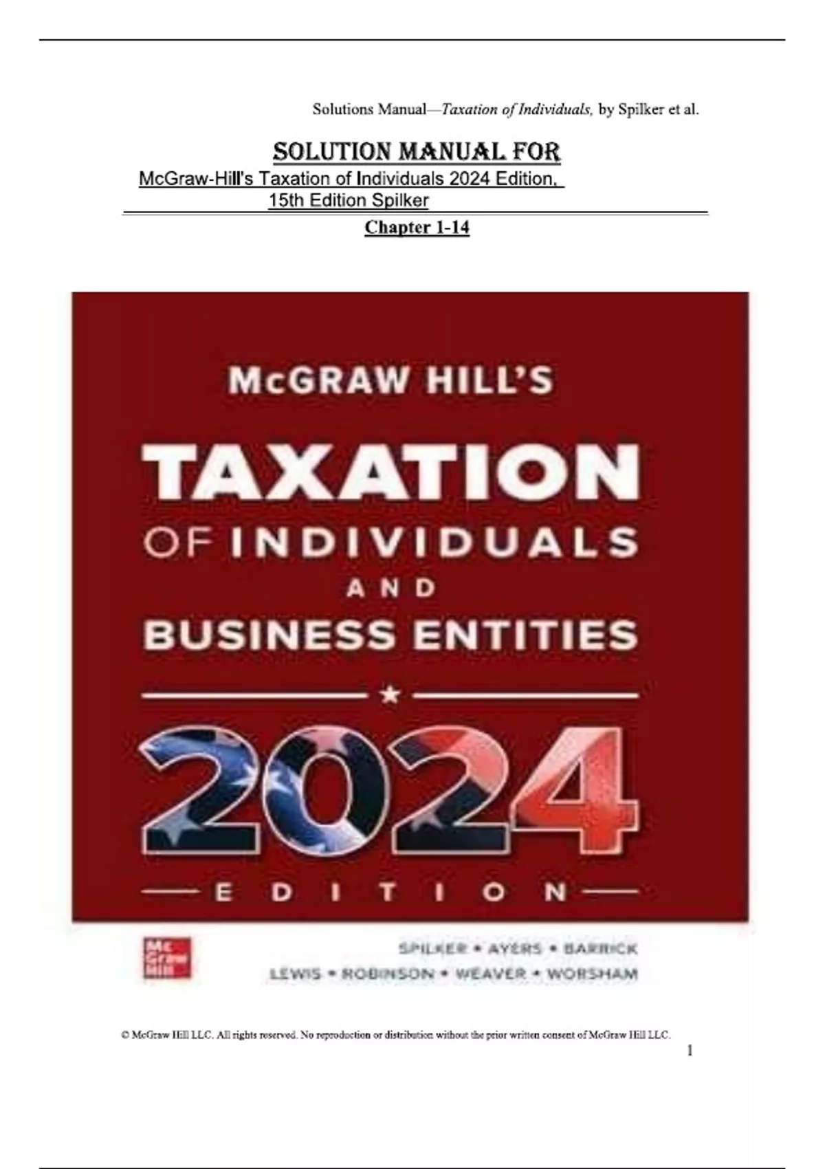 Solution manual for mcgraw hill s taxation of individuals 2024 edition 15th edition by brian spilker benjamin ayers john b.